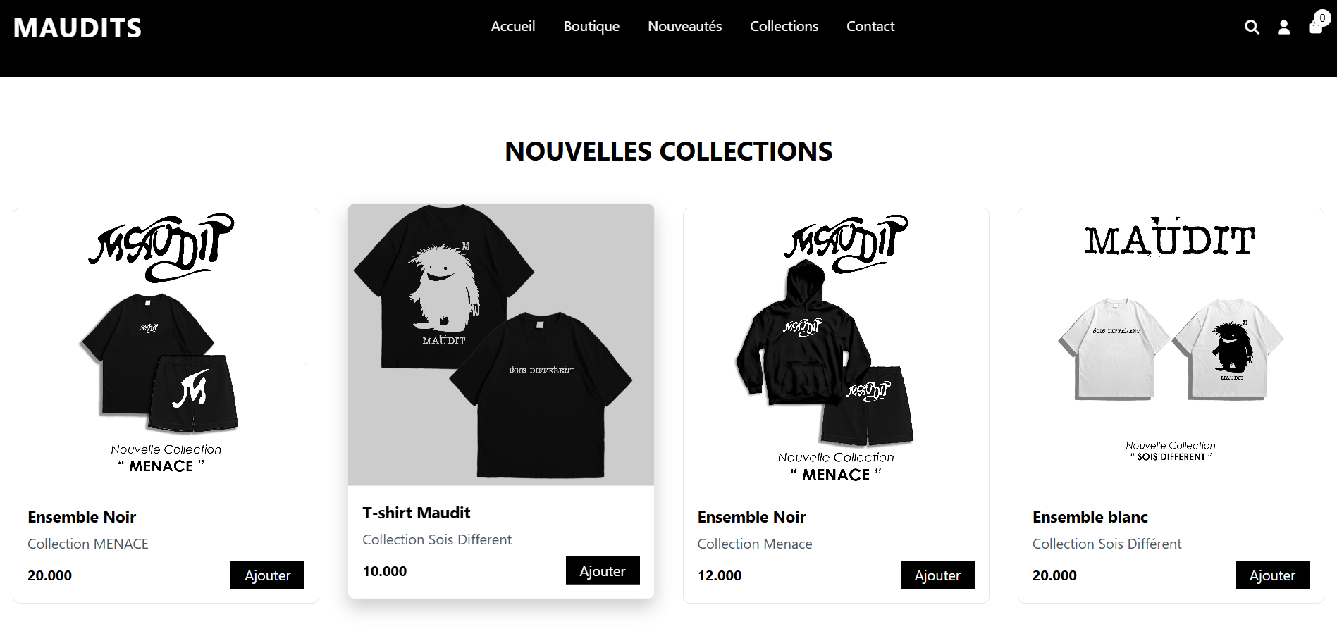 Site e-commerce pour le lancement de la marque maudits